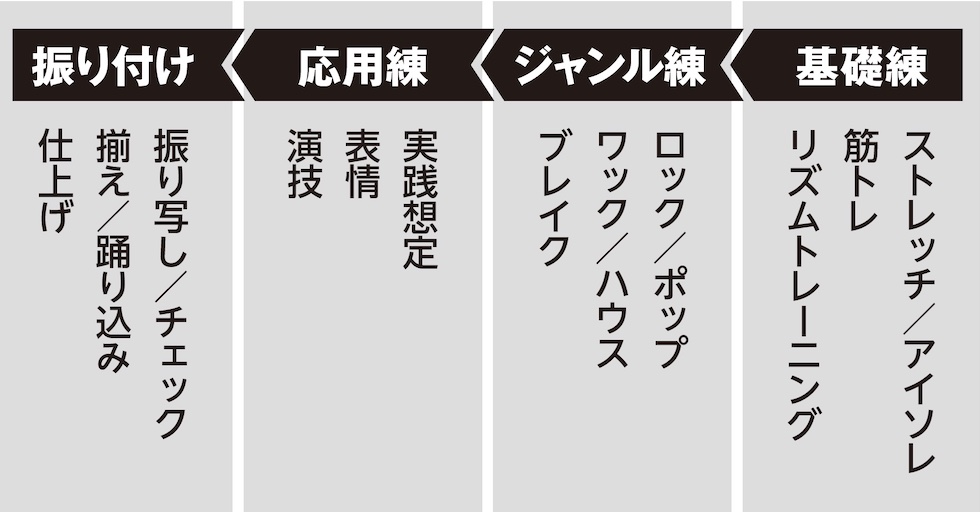 基礎練・ジャンル練・応用練・振り付け練〜ダンス部の練習「4STEP」